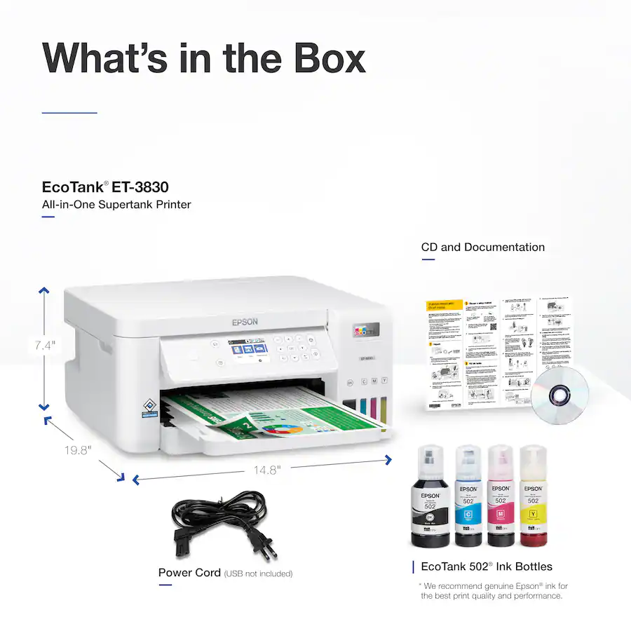 Comes with up to 2 years’ worth of ink right in the box, minimizing refill needs and downtime.
